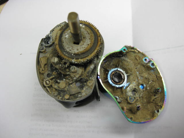 Same thing has happened to me, I found a quantum reel that was previously mine after about 2 years of being underwater. It looks just like that one inside, but the reel was only about 99.00 dollars new. How much does it cost for you just to take a look at it and see what the damage is? TB |