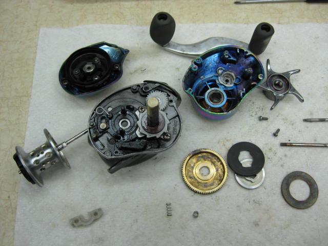 I got this reel in for service a few weeks ago. The customer lost it a Table Rock lake 2 years ago. he knew where he lost it and this year the water was low enough to see it. He was able to snag it and he was hopefull that I could get it back in working order. It took a minor miracle and several new parts, but it works again.
