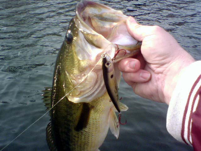 I landed another about the same size 10 minutes later. I'm thinking I might be onto something here. The water I was working was around 6-7 foot deep and my jerkbait was nipping the tips of the weeds below. The lure I was using rises slowly back to the surface, so I was able to work it fairly slow and still maintain some depth, but also able to stay out of the weeds. Suddenly after fishing 30 minutes or so I felt a huge weight on my line and reared back. Oh my, I had a monster on! I worked the bass gently back towards the pier and once it was close I could see it easily was going to weigh over 8 pounds. I caught my personal best last summer, an 8 pounder out of the same lake. This bass was bigger by far. It's mouth and head were HUGE. As it came closer to the pier I started getting down to grab it by the jaw when it reared back and shook off. I about cried on that one. I would have released the gal anyways, but I would have wanted to take a pic to show you guys. I ended up catching 5 bass in total in about 90 minutes before I had to leave. I can't wait to get back oout there again. Maybe tomorrow night. The BPS Carbon Black reel performed fantastic. I couldn't be happier with the reel. And one last bit of great news. For those who remember my earlier post about my fears of a heavy fish dieoff from this winter, this is that same lake I was concerned about. Outside of the initial dead fish I found that first day, I havn't seen any more, and todays outting tells me the lake faired just fine. Thank God for that! Detecting the strike today was as it normally is in very cold water. It wasn't like a strike, but rather a sudden resistance on the line. Also, I've said it before and I'll say it again. A lot is said about suspending jerkbaits in early prespawn. But don't discount a floating jerkbait in shallow water no matter how cold it is. I've had tremendous luck over the years on the floating versions. And I'm always suprised by how often I have found bass in shallow water right after iceout.