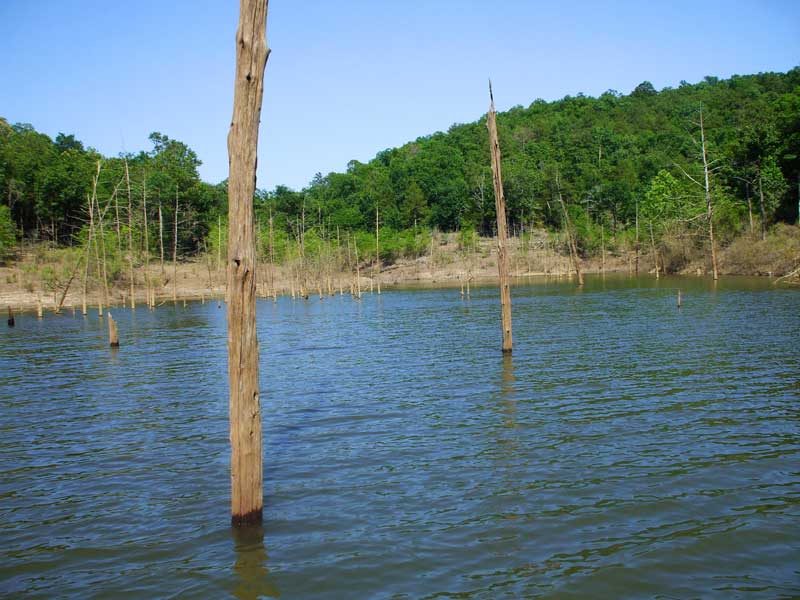 So we loaded up and drove down to Gillham lake, and had us a look see.....It was a much bigger lake then the 300 acre ones we usually fish,but it was still a small enough lake your not gonna get lost on by any means. I really liked the look of the water and all the standing timber, so it wasn't long before we was hunting our first fishing spot, which was difficult for a couple of rookies on a new lake...lol.