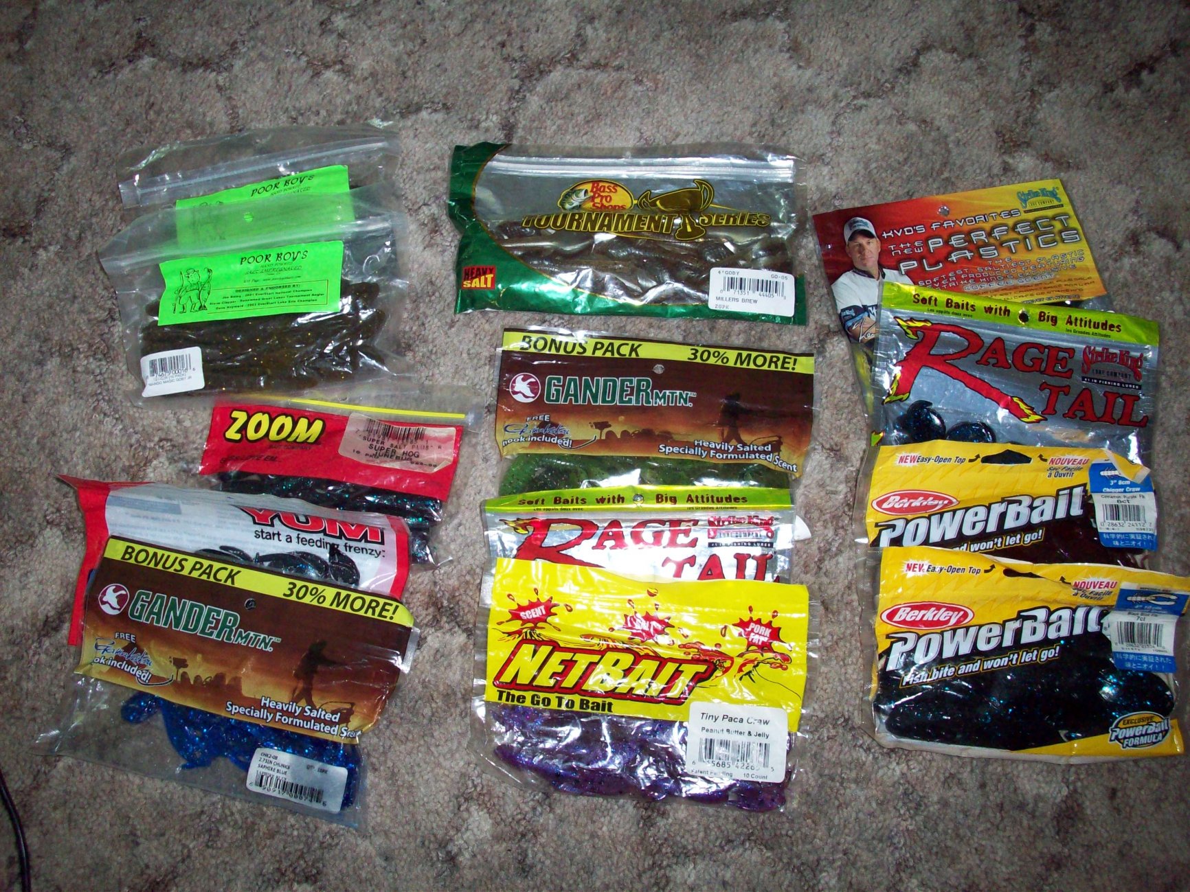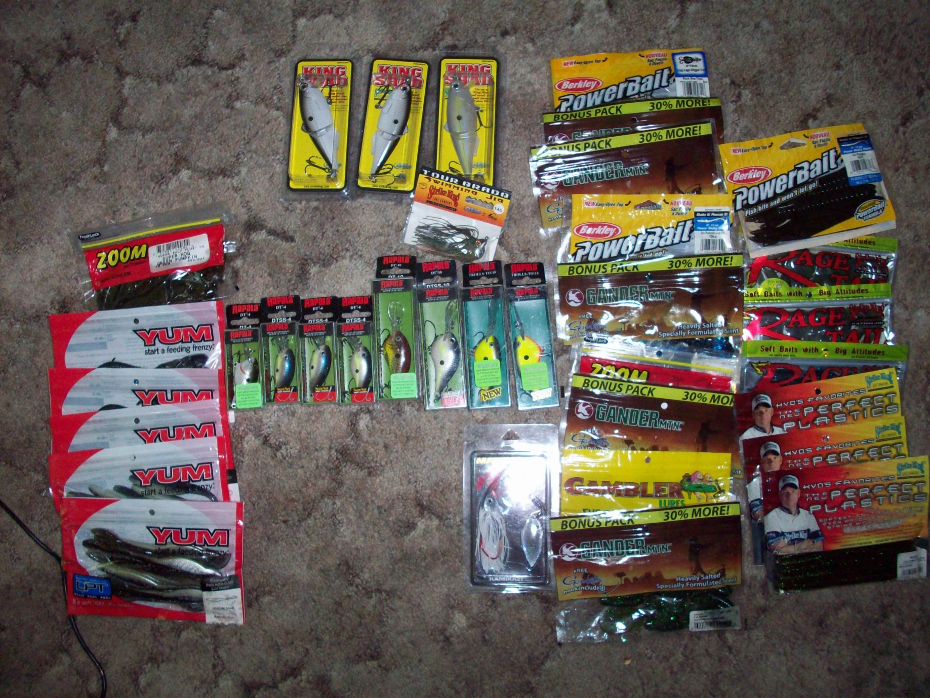 New Plastics (2) Gander Mountain 3 Beavers Black/Blue Flake (2) Gander Mountain 3 Beavers Watermelon Candy (1) Gander Mountain 3 Beavers Watermelon/Chartreuse (2) Strike King Rage Tail Craw Summer Craw (1) Strike King Rage Tail Craw Black/Blue (1) Strike King 5 Ocho Amistad Special (2) Strike King KVD Perfect Plastics Game Hawg Bama Bug (1) Gambler Ace 5 Senko Style Bait Blue Shadow (1) Zoom Lizards Junebug (1) Berkley Powerbait Shaky Worms 5 Green Pumpkin (1) Berkley Powerbait Shaky Worms 5 Green Pumpkin/Blue (1) Berkley Powerbait 4 Crazy Legs Chigger Craw Black/Blue (1) Zoom Super Hogs Green Pumpkin (1) Yum Houdini Shad White/Black/Red (1) Yum Houdini Shad White/Blue/Black (3) Yum Chunk 2.75 Black/Blue Flake Poor Boys Goby Jr. Watermelon Gold (Around 15 in bag) Poor Boys Goby Jr. Mango Magic (Around 15 in Bag) Partial Bags of Plastics BPS 4 Goby Millers Brew (Around 15 in Bag) Strike King KVD Perfect Plastics Game Hawg Bama Bug (7 in bag) Strike King Rage Chunks Black/Blue 3 in bag Gander Mountain 3 Beavers Watermelon/Chartreuse (Around 15 in bag) Netbait Tiny Paca Craw PB&J - 8 in bag Zoom Super Hog Junebug (7 in bag) Gander Mountain Chunks Sapphire blue (Around 10 in bag) Yum Chunks Black/Blue 6 in bag Strike King Rage Chunks Okechobbee Craw (8 in bag) Berkley Powerbait 4 Chigger Craws Black/Blue (Around 10 in bag) Berkley Powerbait 3 Chigger Craws Cinnamon Purple (Around 12 in bag) New Hardbaits Matzuo Spinnerbait Shad (2) Strike King King shad (Gizzard shad) Strike King King shad (Chartreuse Shad) (3) Rapala DT-4 Helsinki (Sexy Shad) Rapala DT-4 Silver/Black Rapala DT-10 Hot Mustard Rapala DT-10 Helsinki (Sexy Shad) (2) Rapala Trolls To 15 Chart/Black Strike King KVD Swim Jig Bluegill (1/4 oz.) Thanks, Ryan