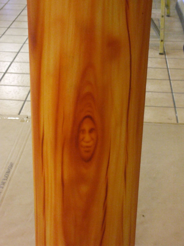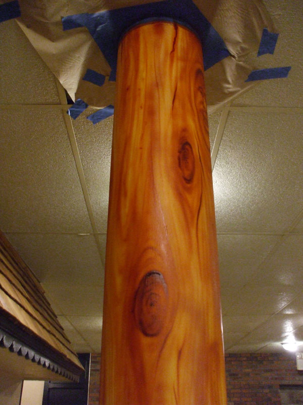 I have been working alot lately, and hadn't been here much, so I thought I'd stop in and share a current project with you guys. This week, I'm doing some airbrush artwork in a new restaurant thats fixin to open, and my first task was to "Do something with that ugly metal pole"!!! Or so said the lady that owns the place....lol.So.....I took her ugly metal pole and tried to convert it into a wooden support beam.....Concidering that we are located in a National forest, I'm anxious to find out if it'll pass the inspection of the locals....especially the ones that work in the timber industry....lol....I hope they like it. I'd also like to hear what you guys think about it.....I'm always my worst critic, but I'm actually happy with the way its turning out....Yeah, I'm not quite done with it yet....I've got a second pole and a couple of murals to do before its over, although some of it might not get done before their scheduled grand opening on the 5th...Yikes....Like I said, I've been busy lately and theres no end in sight yet. Ands its either been too hot or too windy or too busy to wet a hook lately, but I'm bout ready for some on the water theropy.