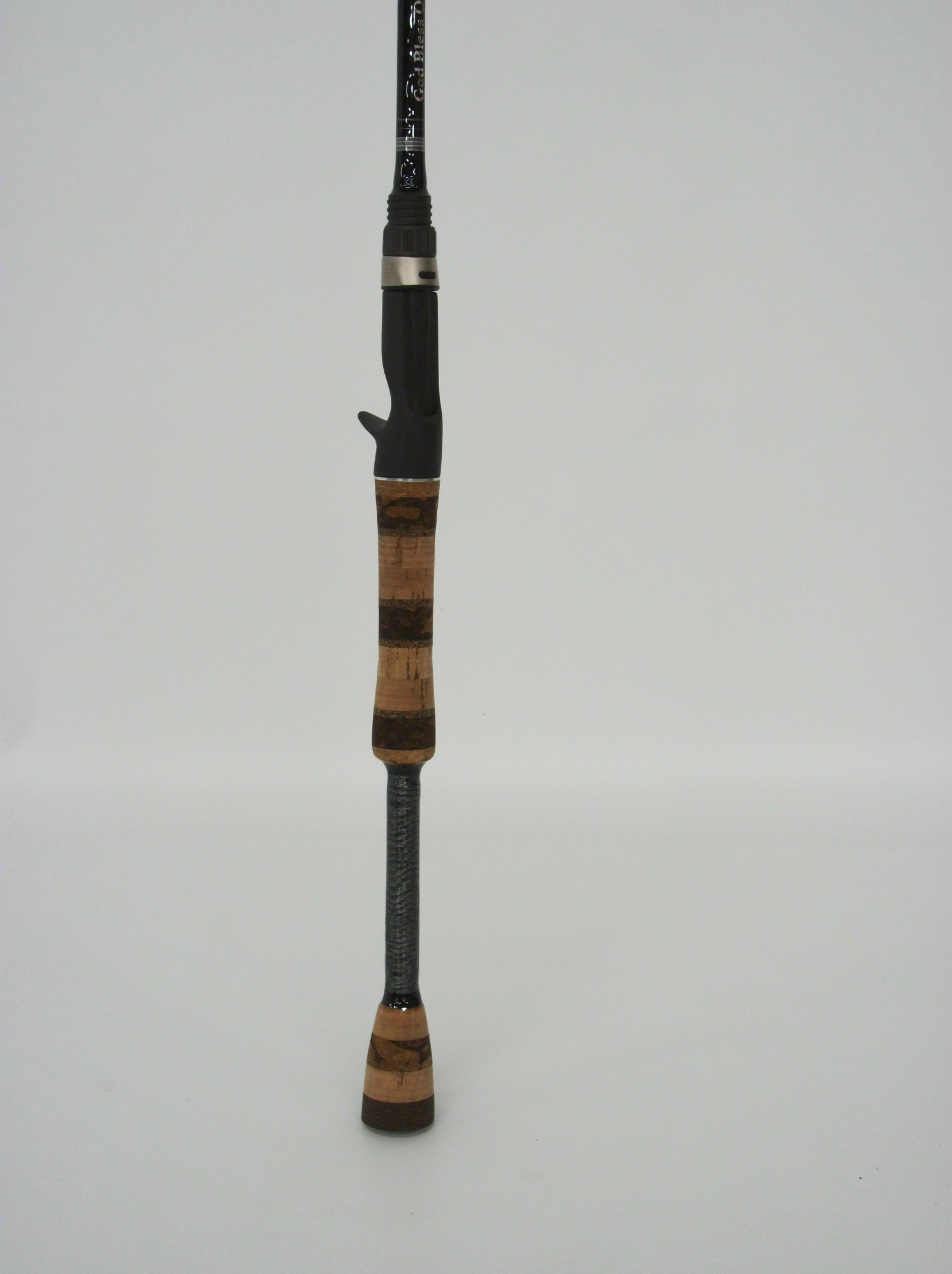 I was told the blank was a St. Croix but I'm not sure about that. It is spiral wrapped with Fuji Alconite micro guides. The rod has a Fuji seat, hand made cork grip and black with silver metallic thread wraps.