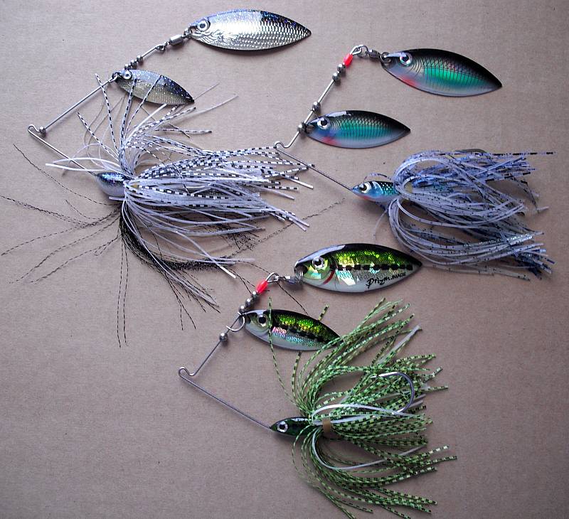 On the Chesapeake swim baits are used instead of grubs and the bait in the center with the hook is always bigger (9") than the others (5"). You could use swim baits, flukes, or grubs in the spread. |