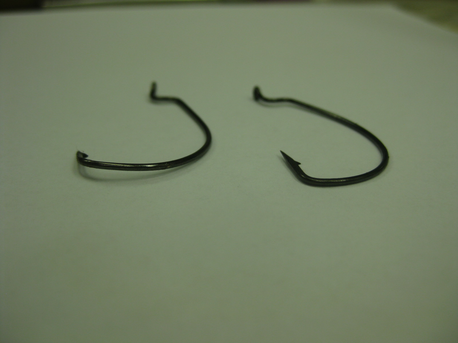 here is what the tweaked hooks look like. You can see the difference between the stock hook and the tweaked one.