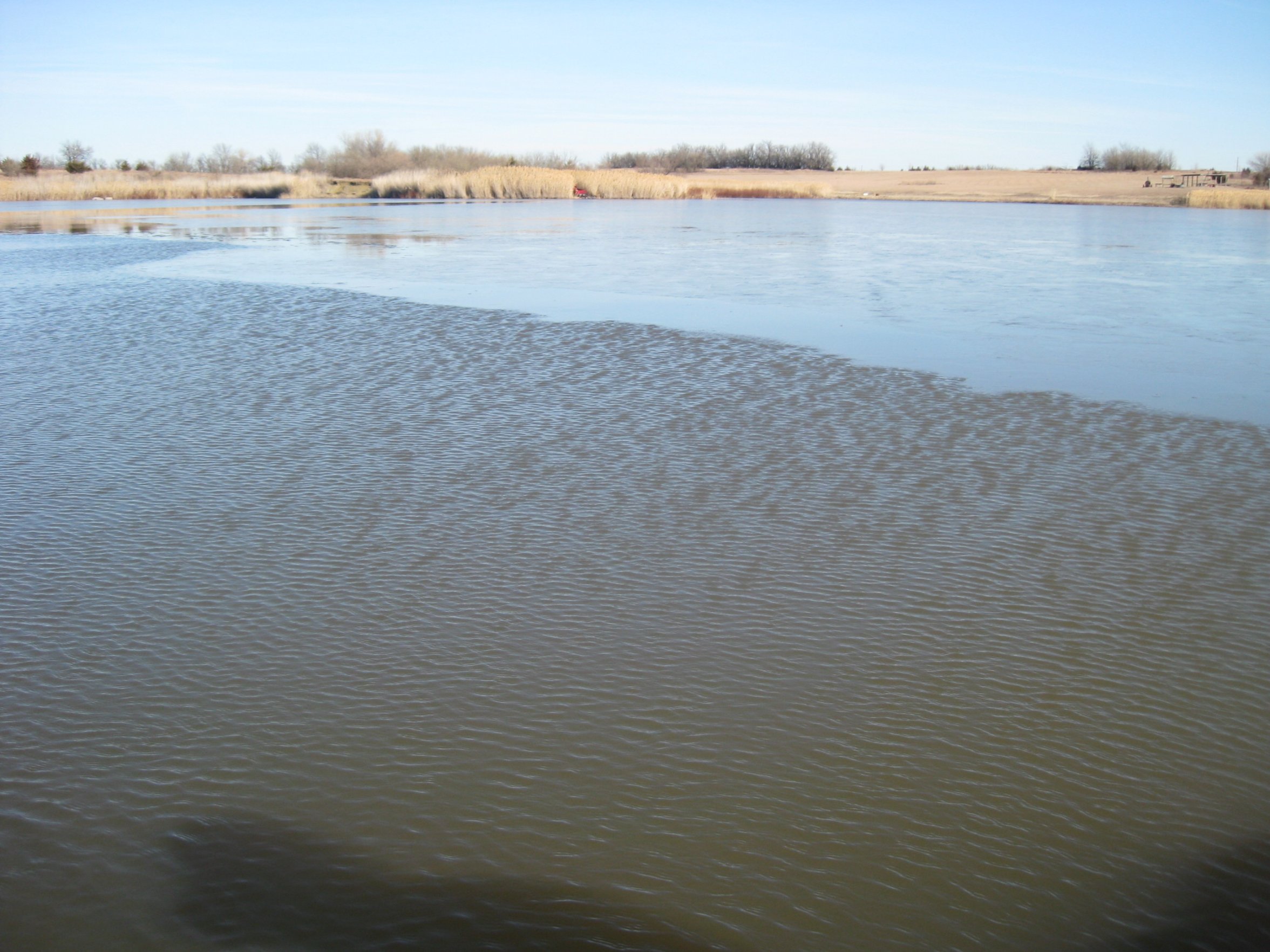 The weather forecst today was for sunny , mid 50's and low winds. It looked like a perfect day to try some winter pond fishing. Tony and i met at a private pond up North of town. Everey pond around here is open, but we got to this one and it had a glaze of ice on it. I thought it was just a thin skin of ice as the area where i launched the boat brke up easy. As we started to go and got to the ice edge, the boat stopped. The T motor would not go at all. The Ice was almost 3/8 inch thick there. We almost gave it up, but there was an open area in the middle of the lake so i fired up the outboard and started breaking ice. At an idle speed, the little fibergalls boat cracked and broke a path through the ice out to the open water. I have a few new scratch's in the pait but the ice didn't hurt the boat, thankfully. On my firts cast with a 78 pointer jerkbiat, i caught a chunky little 14 inch bass. I thought it was game on but it looked like that was the first cast jinx. Didn't catch another all day. LOL. To get more open water, we spent a good hour using the boat to break ise and then turning circles to make waves to crack the ice and wash it away. We got most of it open but still couldn't find active fish. Tony finally caught a little crappie on a jerk bait and then not long before we were ready to call it a day he caught a fiesty bass just a bit bigger than mine. All in all, it was a good day, a little chilly but not to bad.
