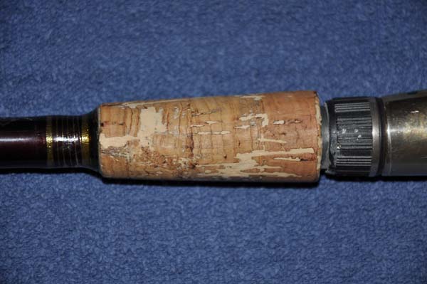 First I want to give my thanks to Garey and Walker for their guidence in this project. Your assistance was very much appreciated! The rod I worked on is a rod that once belonged to our friend Zooker. It was obviously a rod he used extensively. It was well worn with many cracks, holes, and chips. I recieved it last year from Zookers mother through John and wanted to restore it so that the rods integrity could be preserved. I intend to continue to use this rod and the reel that came with it. I'll be thinking of Zooker every time I land a bass with it. I think that would make him smile. The finished product looks pretty darn good I think. It's not like perfectly new, and thats not what my intentions were. There are a few minor inperfections here and there and thats what I wanted. It helps keep the rods character. So here are a few pics of the project as it unfolded.