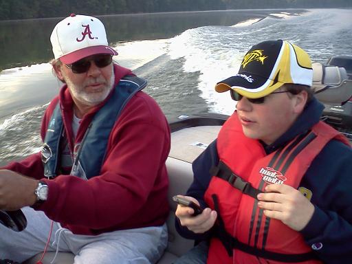 Here are a few that say fishin for me. Top left is John and Anthony at the get together at Wheeler in Alabama. I love that photo. Top right is a photo my wife shot of me in action, and the bottom photo is of Flint Lake at sunrise, my main fishing haunt.