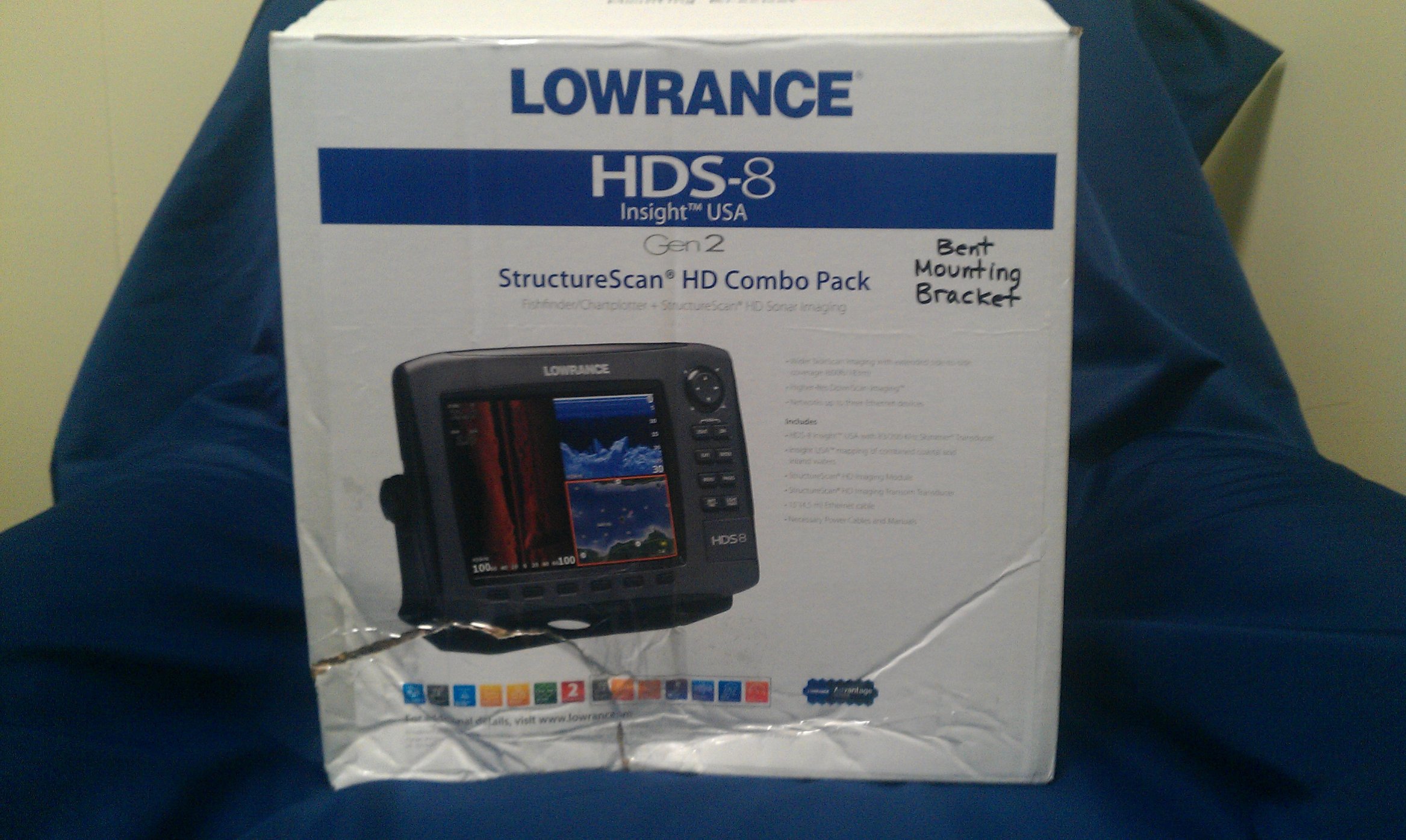 If the box is unopened...how can you tell the bracket is bent? You should also mention that Lowrance will not warranty this product, as the buyer will not be the "first retail customer". I see this same product available from authorized dealers, new with 2-year warranty for $2200ish. Any buyer should consider the lack of warranty on a unit that has obviously seen some rough treatment for a savings of $225.