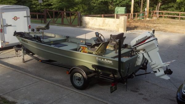LOOKING TO TRADE MY 97 16 FT SEA ARK WITH 1997 50 JOHNSON TILT AND TRIM ...TONS OF STORAGE...SONY CD.BAZOOKA CAMO SPEAKERS.LIVEWELL.BLACKLIGHT DROPINS..NEW MINNKOTA BANK CHARGER. DRIVING LIGHTS ...THREE BATTERIES. NEW CONDITION.HOLDS 5 PEOPLE.TONS OF STORAGE.LIKE NEW MINNKOTA TROLLING MOTOR..TENNESSEE TRAILER..SUPEE STABLE ON WATER JUZT LOOKING FOR A BIGGER FIBERGLASS BOAT...THANKX MIKE.... I have talked to the owner and can get it for 4500.00 |