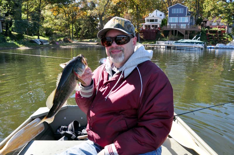 Saturday I got out for some fishing and it was a slow day. I managed to pick up 9 bass, all dinks except one. Saturdays bass is the first photo. Monday we spent in Michigan exploring wineries and Three Oaks Michigan. Tuesday we spent the day riding our bikes at Potato Creek State Park and walking the trails, a picnic and such. Potato Creek can be a very good fishing lake, but we left the fishing gear at home that day. It was cool and windy but a beautiful day. More pics of that to come. Today, we got out to do a little fishing. It was terribly windy and cool. Much of the day we were wearing gloves. The sun helped when it was out, but the wind just killed ya and made boat handling almost impossible. Posted a few of my wife and I. She caught a nice one right off the bat. About a 2 1/2 pounder. Sorry, no pic of her holding it, only of her catching it. She wouldn't take her gloves off to hold the fish. haha I ended the day with another about the same size. Altogether we caught 7 bass. A very slow day, but we had a good time despite the numerous problems we had mainly due to the wind. Nothing like a 35mph wind to take a crankbaits cast and whip it off course and into a pontoon, ect. But all in all, we had a good time. Tomorrow, were off to the apple orchard.