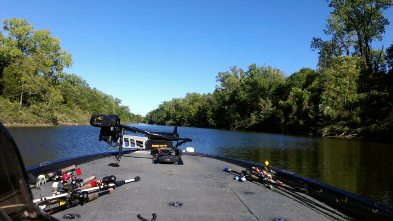 A lot of you guys that are regulars in the chat room probably remember me saying a while back that Britney and I got a gift certificate to a trophy bass lake from my dad for Christmas. With all the stuff going on with the house being built and me changing jobs we knew that there would come a time that we needed to get away for a weekend so we held on to the gift certificate. Well this past September we decided we wanted to go up there and see if we couldn't catch a few big fish. I posted these pictures on facebook when we got back so some of you have already seen them, but now that I am finding time to come on here more often I thought I would post the pictures here as well. This place is a big strip pit that was dug decades ago for mining and offers very challenging conditions because the lake was totally dug out rather than filled by a dam, which means that all the natural depth changes or contour lines you find in a lake don't exist here. You can be 5 or 6 feet away from the bank and you might be in 20-30 feet of water. It still has some shallow areas but it really makes it overwhelming when you are looking around the lake trying figure out what to do. Anyways the owner of the property bought it and stocked it with Florida strain largemouth and has been managing it for trophy fish for around 20 years. During a conversation with the owner he told me that every year there is usually one fish in the 12-13lb range caught, and several 10lbers..........and he had pictures to prove it LOL. Anyways our trip was pretty much doomed from the word go, the weather was in the low 90's all week until the day we left and we had a cold front that dropped temps to close to freezing over night and highs were in the upper 50's and not a cloud in the sky. We stayed there for 2 nights and worked our butts off trying to find big fish but we had to settle for a good time and several average fish. This place sits on 2,000 acres and he has 3 cabins placed around the lake that he rents out to anglers and deer hunters. The cabins are all secluded and you have waterfront views and a dock with electric with each cabin. At no point did we see another person, and we only found one of the other cabins and that was because it is in the back of one of the coves we fished........we never did find the other cabin, you are certainly secluded here. The cabins are like no place I have ever stayed. All of them were built by the owner and are top notch places with all the comfort of home, they are beautiful. We had such a great time that we just called this last week and booked another trip for the end of April, hoping to hit it just right and get to do some sight fishing. Here are some pictures from our trip.
