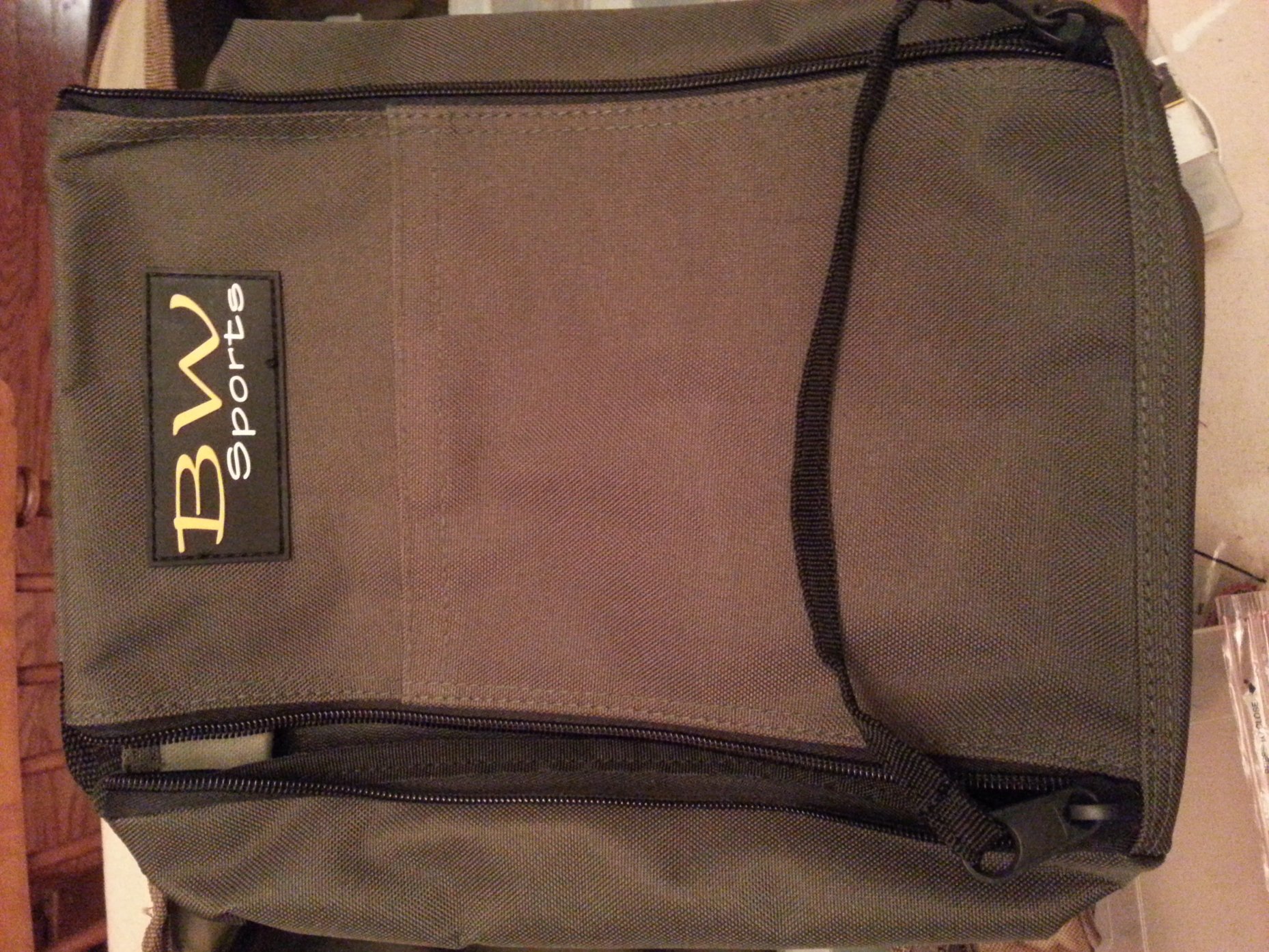 I happened to find this at Sportsman's Warehouse last week. As you can see it's pretty roomy. I used the stick on velcro strips to attach to my individual worm packets then stuck them inside the bag. I got 12 bags in there even a couple of 8" ones and there was still room to throw some more packages on top. I think I'm going to like it. Funny thing though: I went out to the BW Sports website and couldn't find this item anywhere on it. Weird...