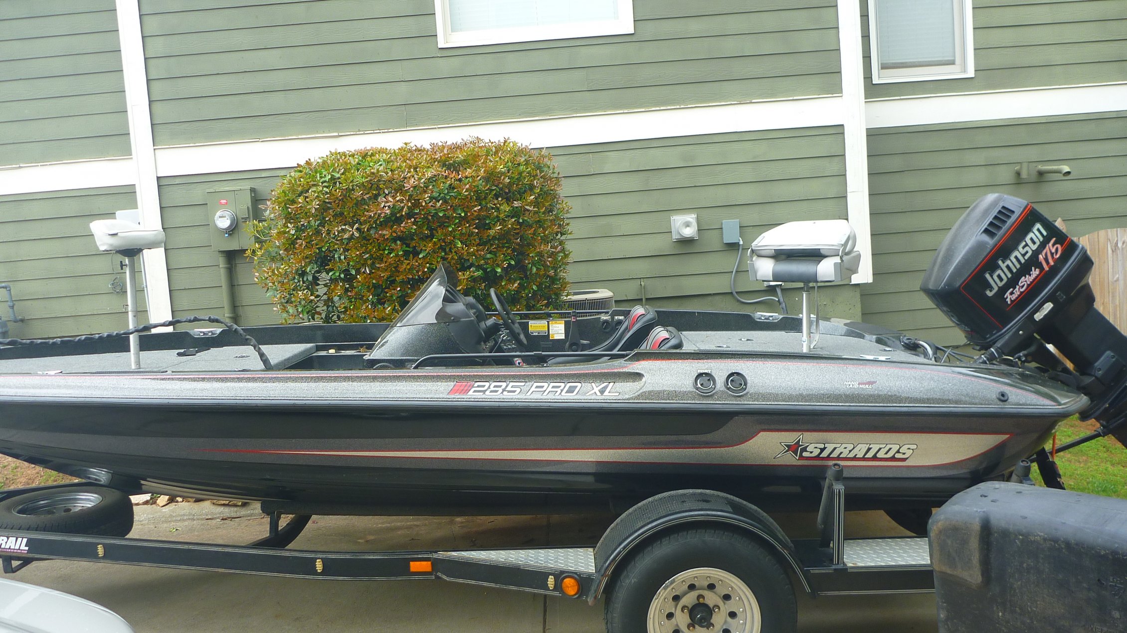 I recently got a 385v (1985) slightly larger and older placed a fresh rebuild merc on it even though ive always ran omc due to it having merc controls and me a bit old to rig. The stratos line isnt a real fast boat but yet a stable one at reasonable speed. Compare even though years apart my 385v 19 ft 1 in(1985) 1,200 lbs ![]() the 285 has been made in about three different lengths which one is yours or what length |