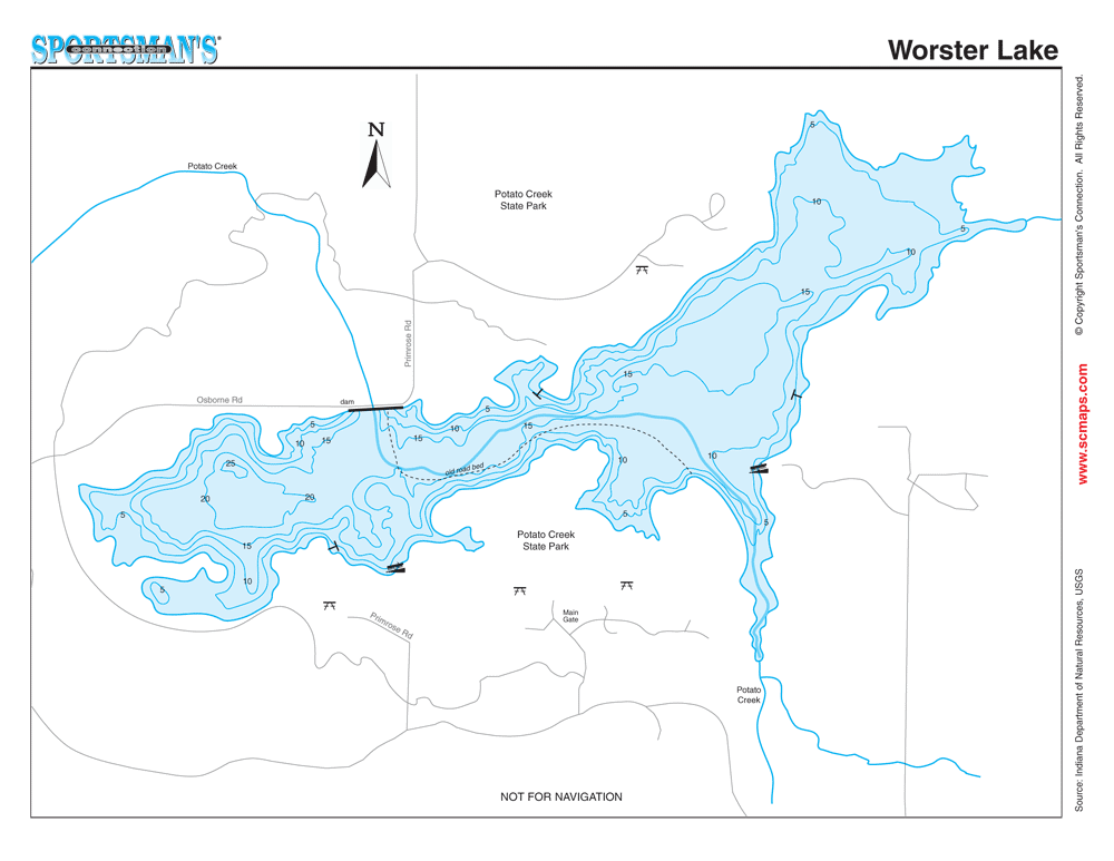 Worster Lake is the lake I've talked about at Potato Creek State Park here in NW Indiana. It's located about 1hr 20 min from my home. I've always wanted to fish this lake by boat but never trusted my beater pickup to haul my boat to it. So while we get over there once a year to enjoy the park, and the bike path, I've only fished it from shore. It's a man made impoundment, absolutely beautiful, with no development anywhere allowed on the lake, except the State Park. It's 385 acres in size, and trolling motor ONLY allowed. The bass in this lake grow faster than the states average according to the DNR and now that I have a way to dependably tow my boat anywhere, I FINALLY got the opportunity to fish this lake yesterday, and was I pleased to do so. What a pleasure it is to fish a much larger lake than I usually fish with no development along the shoreline! And the bass fishing as I found out yesterday can be awesome! Having never fished this lake I used a lake map to work the western basin which is the deeper end of the lake. After catching a frog, my first catch of the day who attacked a popper, I hooked into my first bass of the day, and it was a MONSTER. I was fishing the entrance mouth to the bay in the lower left corner of the lake, about in the middle with a Yo-zuri Rattlin Vibe lipless crank, silver black back. I worked this bass to the side of the boat and as I prepared to land her, she turned and dove and out came the lure. My wife yelled OH NO! I just sat and buried my head. I know that bass would easily have gone 9-10 pounds! The a few casts later, I hooked into another huge bass that jumped and threw the bait. Made me sick. I decided my drag might be too tight, so I loosened it a bit and didn't loose anymore fish for the day. I also took fish on a Strike King Series 4 crank bait in Chartruese Sexy Shad. Most all the fish were caught by raking the lures across the rocky bottom. Took a couple on a spinner bait as well. There was lots of great looking shoreline cover and standing timber, but no action in shallow this day. I think the bass were staged on breaks near the entrance to shallower bays, waiting to move in after the shad. I hope to get back there soon! Felt great having success the first time on a new body of water. Here are a couple pics from the day.