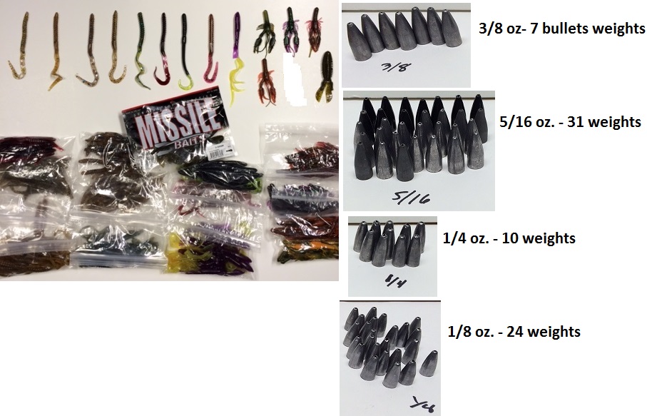 Default plastic worms & bullet weights for sale.