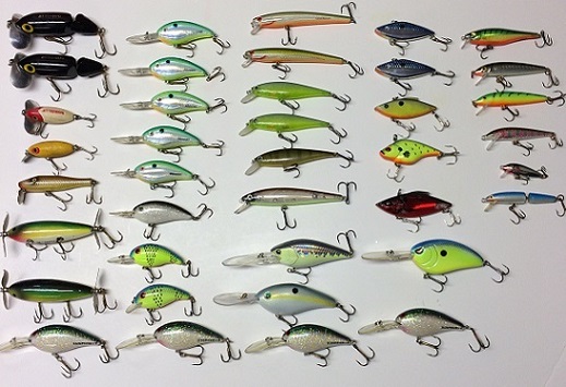 Thanks Jim Lures are : Lucky Craft flat CB-D-20 1 lure Lucky Craft jerk bait pointer SP 3 lures Strike King 5 XD 1 lure Spro Little John DD 1 lure Rapala jerk baits 6 lures Jitterbugs 3 lures Lure Jensen Pro baits 2 lures Original Heddon spooks 3 lures (not pictured) Strike king jerk bait 1 lure Traps 5 lures Bomber crank baits fingerlings 6 lures Excalibur jerks baits 2 lures Bandit crank baits 2 lures Norman cranks suspended + 4 4 lures Fred Arbogast spinner hula dancer 1 lure River Runt dowing minnow ? ? 1 lure |