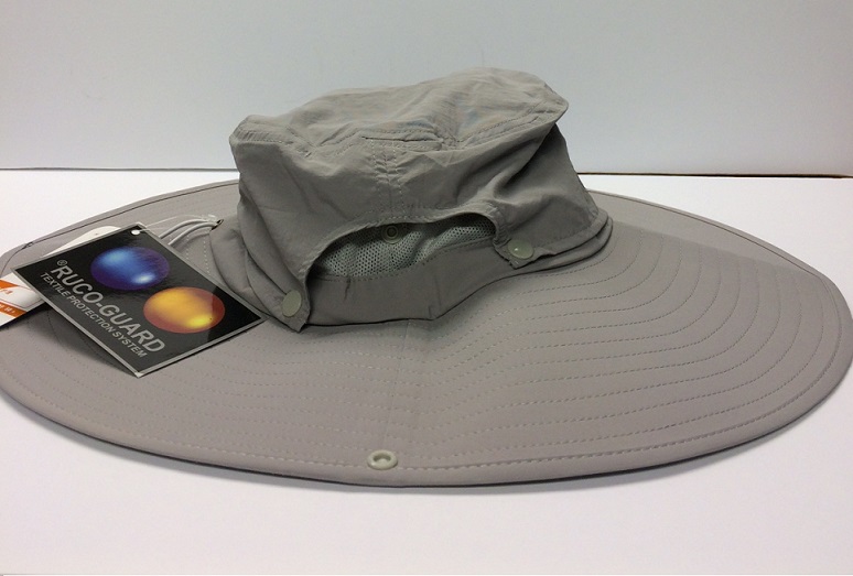 Selling this New never used UPF 50+ sun bonnie hat. Its light Grey color. The brim is 5” wide all around, its top is breathable. It has a removable top with mesh under the top cap for it to be breathable. It’s called a Go Kuvera- Ruco Guard sun hat.