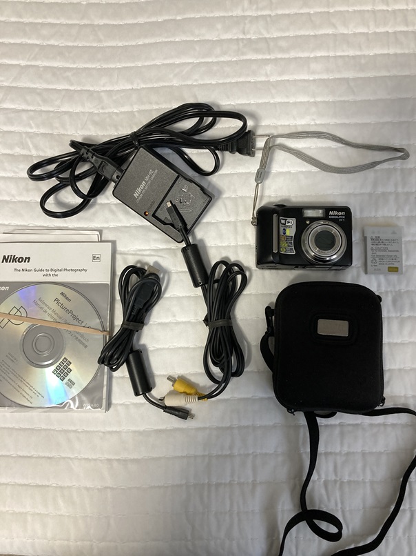 Selling a Nikon Coolpix P1 Digital Camera, With SD Card, Book Manual, and CD Manual, 2 batteries, Case, Charging wire for Batteries, TV cable hookup for Camera, USB cable to connect to PC, Everything works on the Camera. I have couple pictures attached showing its on and the screen has no cracks or anything on it.