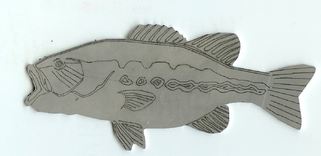 "It's best to have one chatterbait so that you can use the blade as a template for your own blades. If you don't, the blade is 30mm long, 23mm wide at the middle, 6mm across the top, 17mm across the bottom, and the widest point happens 17mm from the bottom of the blade. Take old spinnerbait blades or a thin trolling spoon and pound it flat with a hammer. Use tin snips to cut the blade. Drill 3 holes...two to attatch your line with a snap and one to attach the jig. Put one split ring on any old bass jig or jig head...then other split ring on the blade you cut...then attatch the two split rings together. The two split rings allow the jig to sit hoizontally with the blade (one ring gives you a 90 degree twist). Now attatch the snap...you may have to bend it a bit to get it to work. Finally, take some pliars and put a slight bend to the front of the blade at it's widest point." |