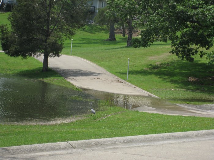Flooded driveway at Big Bear. I hear the bluegill fishing is great off the road to the right there... |