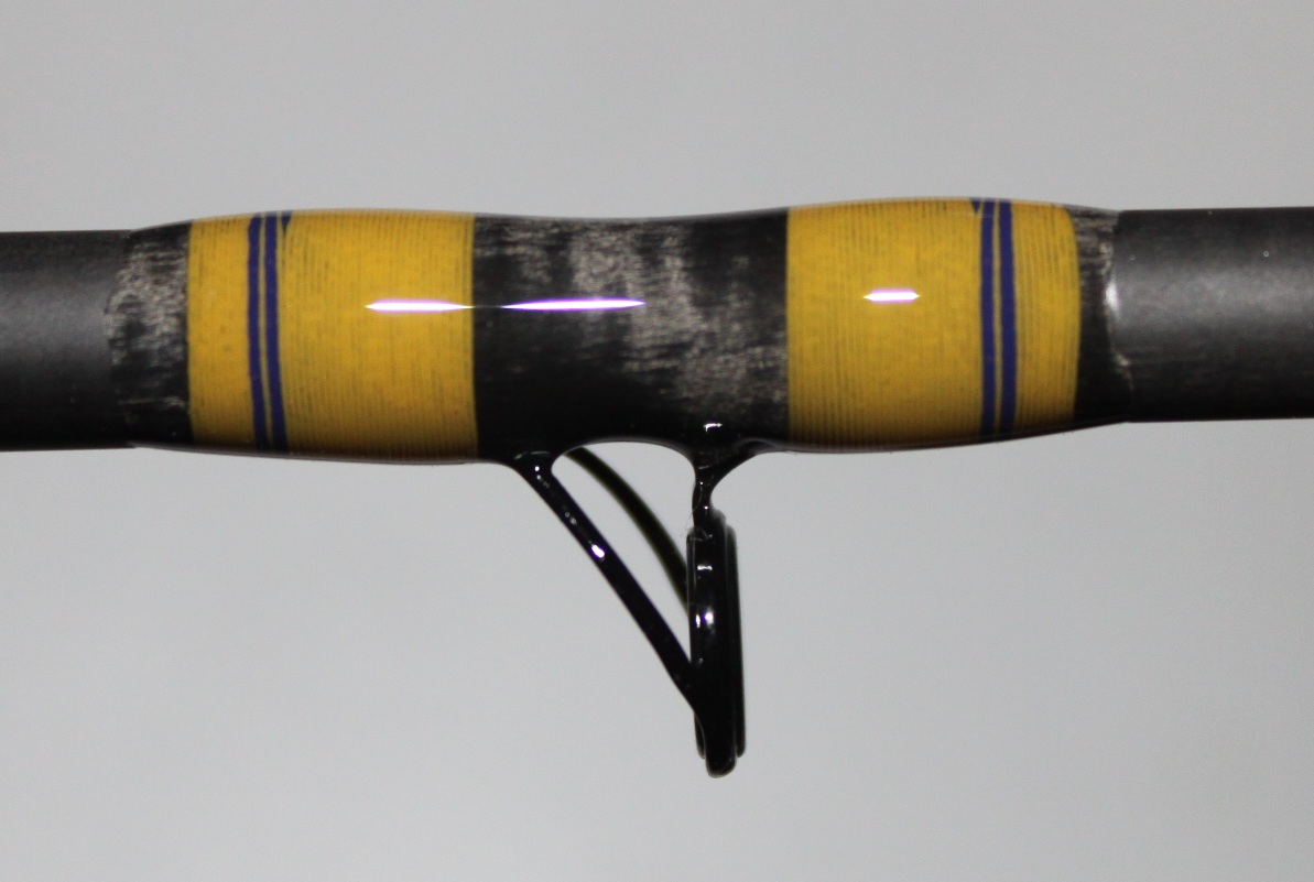 Well I have been cutting most of my chit chat nights to finish this one up for a guy's wife. It is wrapped in LSU Purple & Yellow, Geaux Tigers in an Eeyore tone hahahaha. It is built on a MHX 843 MH-F blank with a 10" cork split grip. I used Fuji Alconite guides (Dbl Foot 10,8,7, (5) Single Foot 6s, and Tip 6) and Fuji exposed reel seat.