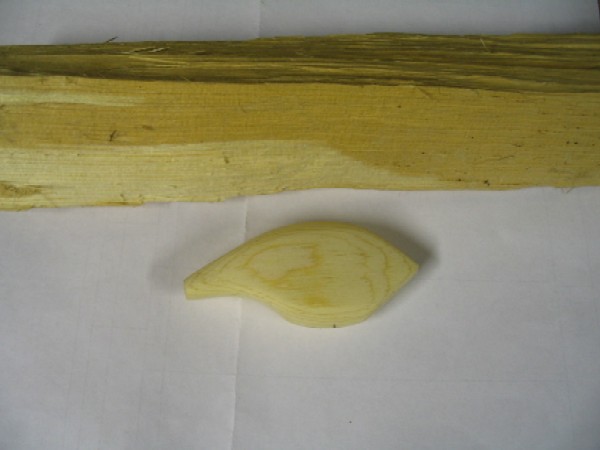I thought I'd post a few pics on how my crankbait is coming along. I has the belly weight and hook eye, and the rear hook eye installed. I've cut several diving bills and can't seem to get the line tie hole centered on the bait and the bill. Oh well, it won't be long (I hope) before paint.