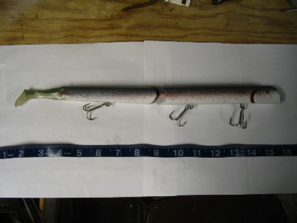 Zooker, I know it is a biggn' but don't forget we do have "BIG" fish out here.The bait doesn't really dive per se, it is mainly a "wake type" bait.