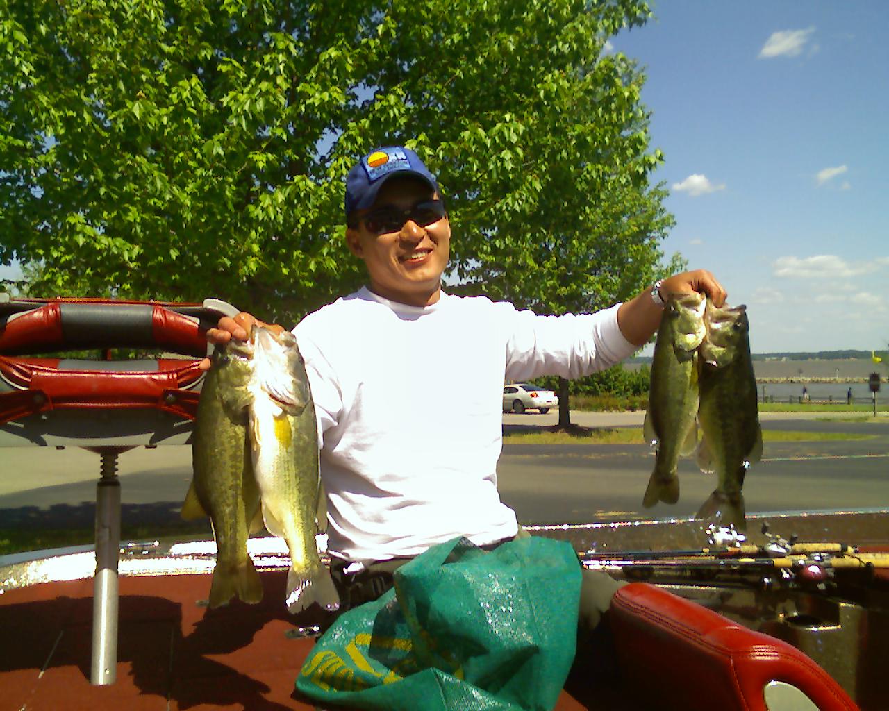 First trip this year for LGmouth Bubba style and the weather could not have been nicer. Fished around Greenway Flats for the striped things at dawn but no takers. Once sun came up we shifted to smaller rattle traps and did real well with the outside grass edge. Yo yo style and grass ripping produced about 8 LGMouth and this big coon tail perch.