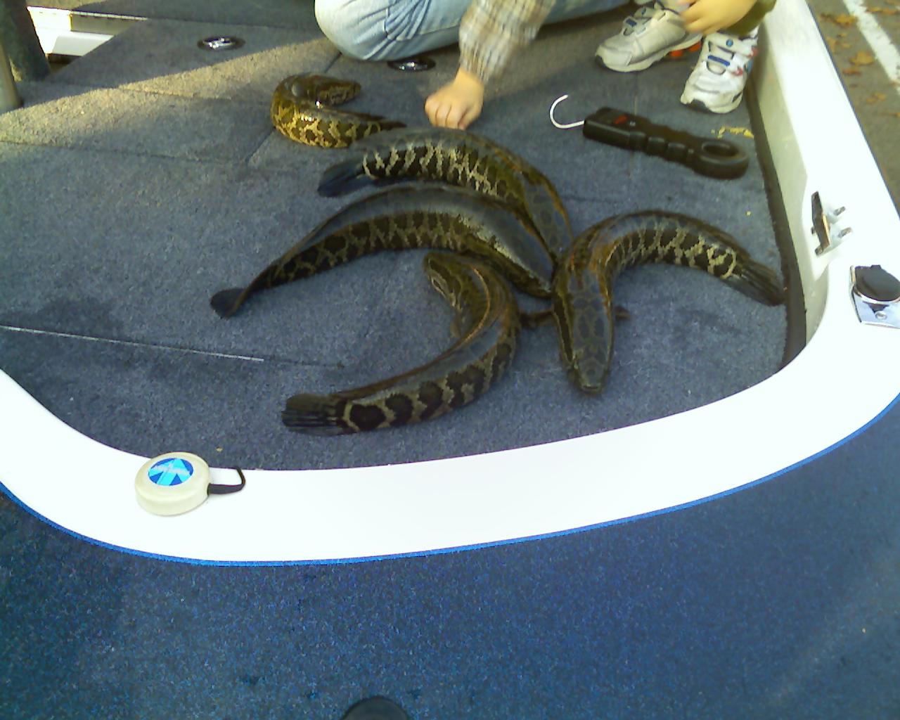 I'll bet you could make some sweet lookin belts, hatbands, boots etc. out of 'em. All we gotta do is make snakehead leather fashionable, and that'll put 'em out pretty quick. As an in the closet trash fisherman, I'd kinda like to catch a few