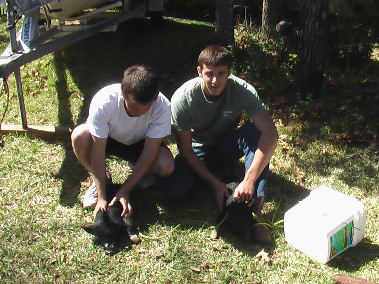 no i was seein them every time the feeder went off on my deer lease. i slid in and waited. when the feeder went off they came a running. they were 50 or so pounds each then. they hit the corn pile head down feeding i just reach down and snatched a leg on each one..boy was it LOUD for several mintues. till i chunked them into the back of my bros truck and hauled azz for my mom's house-where the pen awaited-i have never seen a red/black tiger stripe boar afore always all red or all black..both weigh in the 100 pound range in the video.the hostess diet adds fat..