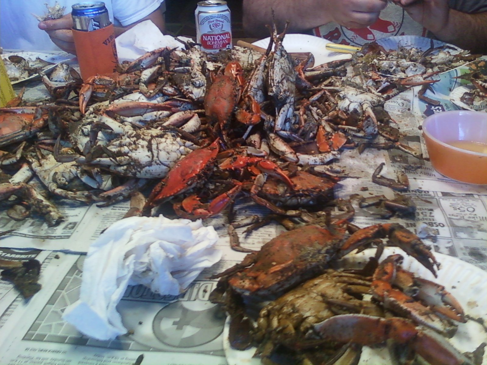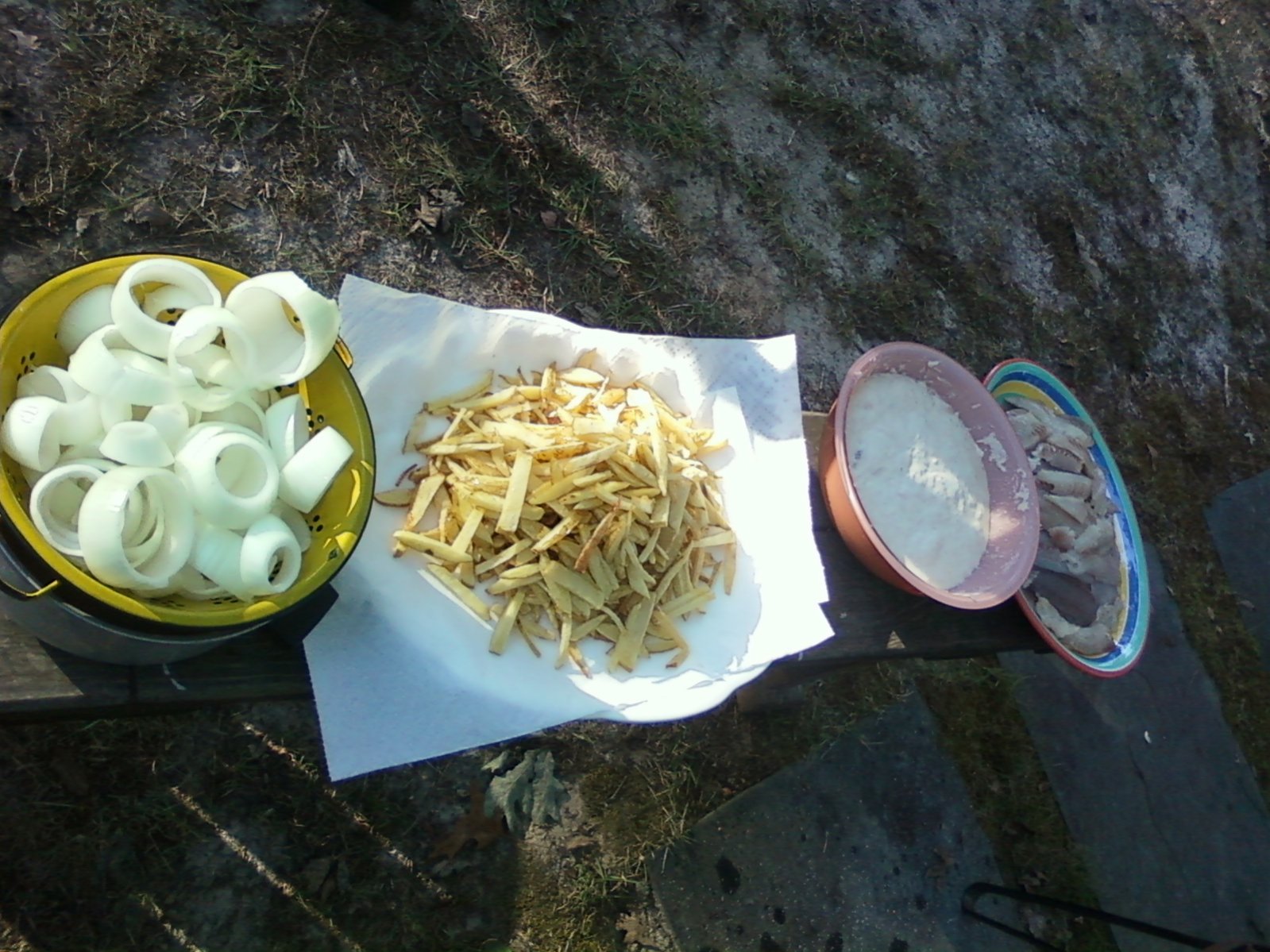 smoked bluefish blue crabs before and after a mix of croaker, sea trout, and scup with some onion rings and fries |