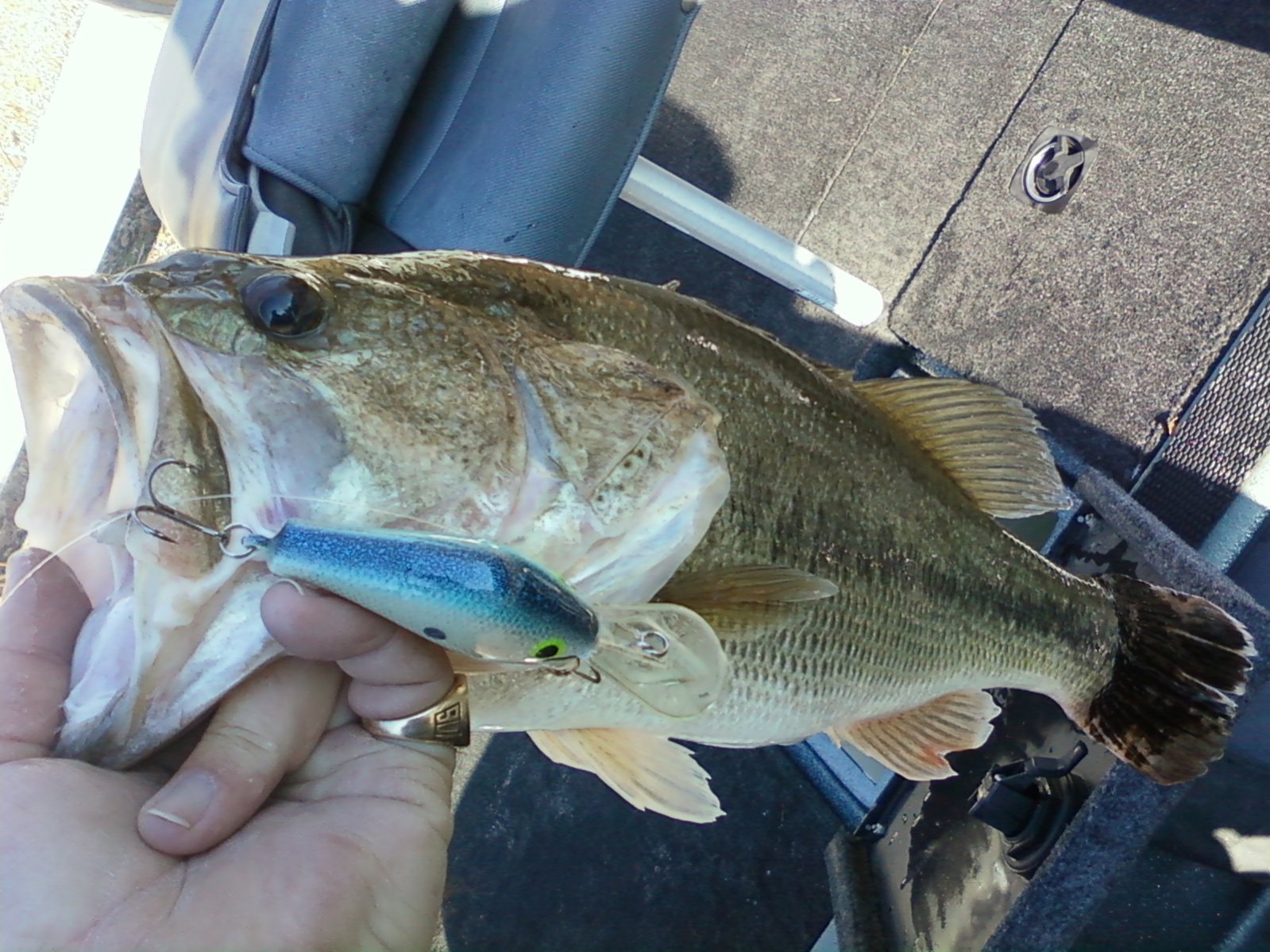 ![]() Got out on the hot side on Sunday. Temp guage in the car said 21 degrees. Most I could do was 35mph running to the first spot to fish. That was a painful experience. Hooked up on the first pass with this 3.92 lb on a Poe's 300 in Smitty Shad. 1st of hopefully many in 2011 .Was having issues all day with ice freezing in the eyes and making slushies with the line guides. Busted off another keeper on a black and blue jig off a dock. Using a new (to me) bait/trailer made by PowerTeam (http://www.powerteamlures.com/index.php?cPath=24_47_39). Not happy that a 2lb bass busted 17lb line .