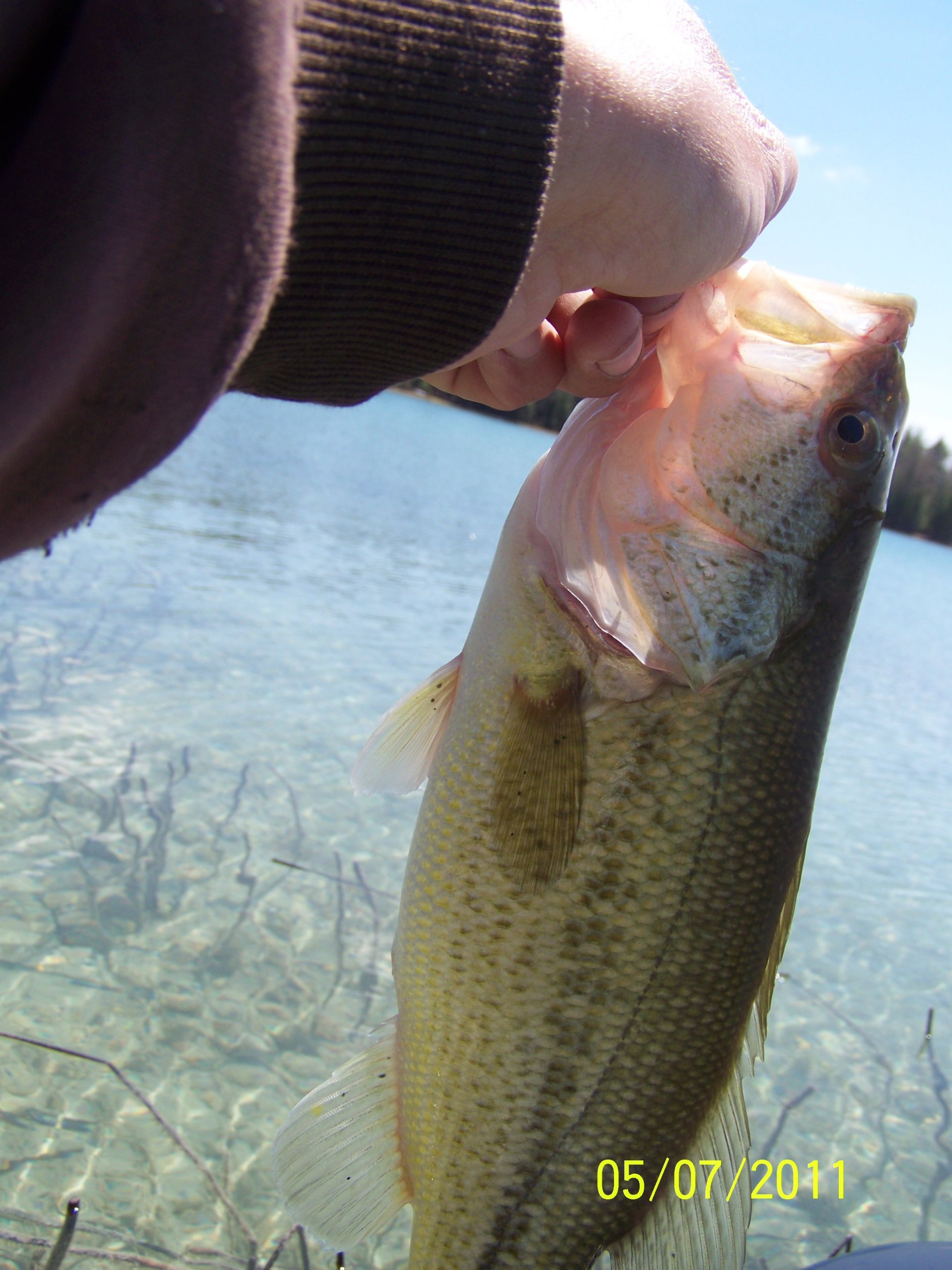 )Clear water as always around here. That lake is one of the first around here to get murky actually, due to the green bottom. Can't wait for the spinnerbait bite to start!