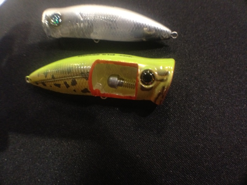 Here's another very unique bait from Deps out of Japan. It's a popper called the Pulscod. In the cutaway picture you can see a spring loaded weight. When you pop the bait aggressively, the weight bounces back and forth on the spring so that after the pop, while paused, it quivers and pulsates without you having to move it. It sounds like a really cool idea, it will be interesting to see how it works on the water.