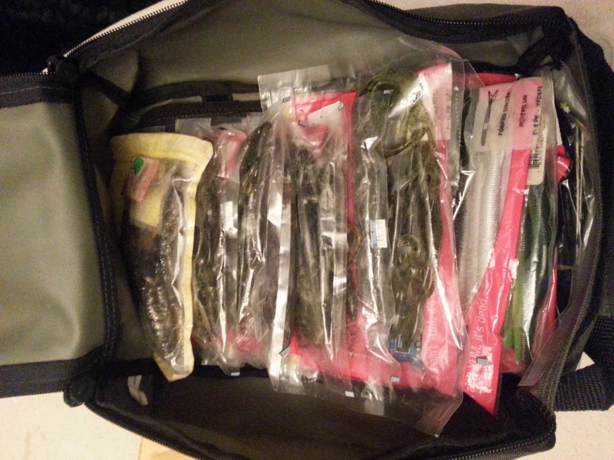 I'm not sure if you are in the market for a soft-style bag only, but I bought by father this Flambeau hard container for worms, and I think it is a great buy. I don't know how many bags of worms, creature baits, etc... that it will hold, but it's a bunch. Also has a lockable lid and a handle for easy portability. Just thought it might be another option, and we did not pay the $16.70 price at Sportsman's Warehouse (I think it was more like $11.00, but don't hold me to that, I can't remember honestly).