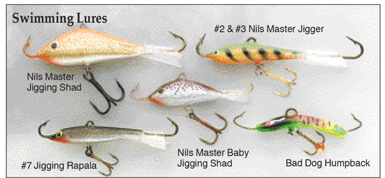 I LOVE the ice fishing jigs. The ones with the line tie in the middle of the back and a hook at both ends. They should be available this time of year ... and the work GREAT, even in warmer water, when the fish are deep. |