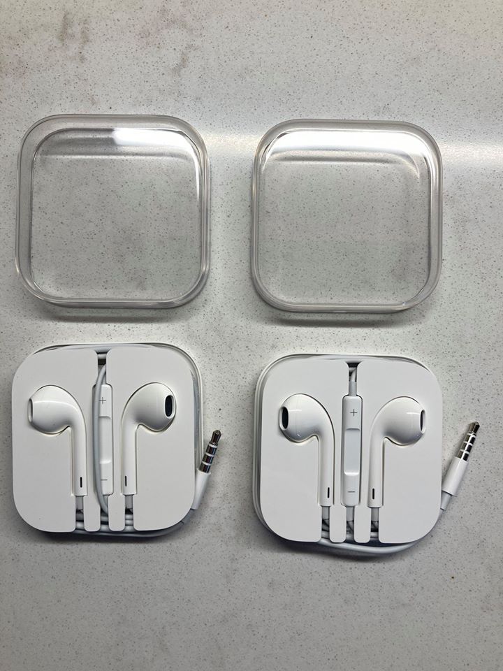 Appel Ear Pods with 3.5mm headphone plug (both white color). Never used or opened (just opened for photo shot). Selling both pairs together for one price listed. I can ship them to you. I use PayPal.