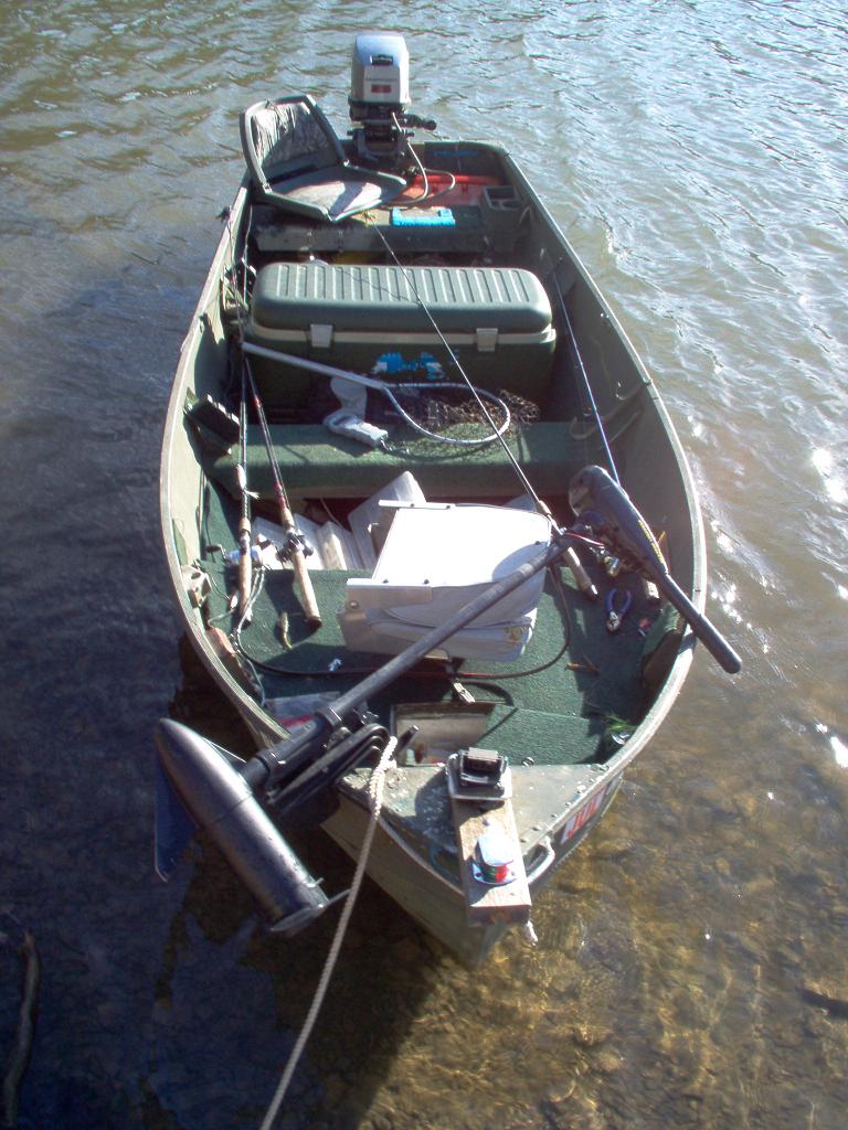 That doesn't mean I can't make the best out of this boat. I am planning right now a modest deck, covering the front area as you see in the pic, attached more or less to the bench seat, maybe an inch or two higher. This portion will be hand welded, I can get those friends to do it (and these guys are pros - the best welders in North Alabama by some accounts). It will be as you said rigid, but I will have a dry storage hatch in the front large enough to accomodate the cell phone, camera, flashlight, Yum spray, sunscreen, glasses and boat registration. Behind this I am considering a large swinging deck...how to explain this...if you can see where I am stashing those plano boxes in the pic - I must preserve that storage space. I don't want to continue the deck that far back and just supplant that storage area with hatches, that would add unnessesary weight and waste too mcuh good space...so I am thinking that maybe we could mount aluminum on a hinge way back on that middle bench seat (the one with the net on it). Basically it would be a deck that you could lift up from the front to get at the tackle, maybe a small cooler with drinks...stuff you need for fishing. No doubt this will take some designing and engineering, but I feel its doable. Then, I want to add a built in livewell. The large cooler was a decent idea because it afforded incredible space as a livewell - but ultimatly it failed cause the thing sat too high up in the boat. The floor of the boat is round, cresent shaped - what I need to do is maximize the livewell area while still providing that crucial seat that is low enough for someone to sit on when riding up the lake. I'm still thinking its possible by building a form, about 18 inches out from the bench seat, creating a canal under neath this form in the very bottom for drainage from the front of the boat to the rear, and coating this form with the stuff they spay in the back of pickup trucks to make it water tight. There are 5 things I'm really having to consider in this project. 1. Balance. The decks cannot be so high as to make it dangerous to stand in, that would nullify the point of decks altogether. 2. Maximization of storage space. 3. Aerodynamics - must have a low profile going down the road and the lake. Part of the appeal of having a deck is that it makes the boat cleaner and more organized, so everything must be smooth. 4. Weight of the nose - must avoid adding too much weight, it does affect the plane. 5. This is a 2 angler boat. Meaning I have to take care with the middle section, when sitting there you have to have a place to put your feet and the best place for a second guy to sit has always been on the cooler. The fixed livewell will supplant the cooler and maximize the area of the livewell while also affording a comfortable seat for that second angler. Right now we have the stock aluminum prop. It had to be replaced one year after we hit some rocks on Pickwick and sheared it too badly to fix. I was talking one night at the ramp near the decatur flats with a fellow who recommended the stainless props and I'm planning on getting around to it eventually, but its expensive. I only go all out on the channel, I'm more cautious driving up the lake than probably 95% of anglers out there on the water.