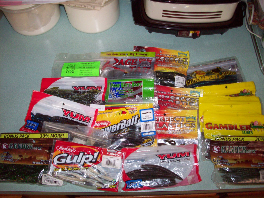 Jigs - Total of 40 Jigs - Jewel Eakins Finesse Jigs 5/16 oz. - GP Candy, Black/Blue... Strike King Tour Grade Footballs and Finesse Footballs, Black/Blue, PB&J, and a few other random jigs. Crankbaits - 24 total - Bomber, Strike King, Bandit, Norman, Jann's Netcraft, and one Rapala Crankin' Rap. Plastics - 20 bags total - a couple are new bags, never been opened... rest have some used out of them, but still enough in the bag to be used.... Strike King: Gobies, Finesse Worms, Ocho Stickbaits... YUM big show paddle worms, berkley gulp minnows, powerbait minnows, BPS Stick-O's, and Gambler Ace. Also a few things from Poor Boy's... Ryan