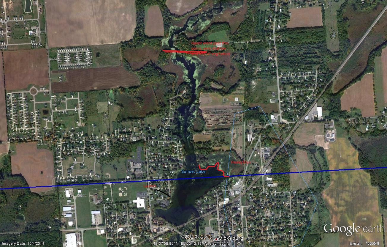 Moved to this lake a few months ago, managed to get 1 smallmouth from it, decent size so i know they are here. Have been having a real hard time finding bites now that the weather is cooling off in michigan. Here is a picture from google earth, not sure how much help it will be but you can see the surface vegetation.