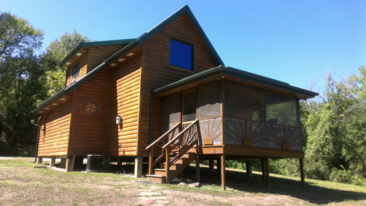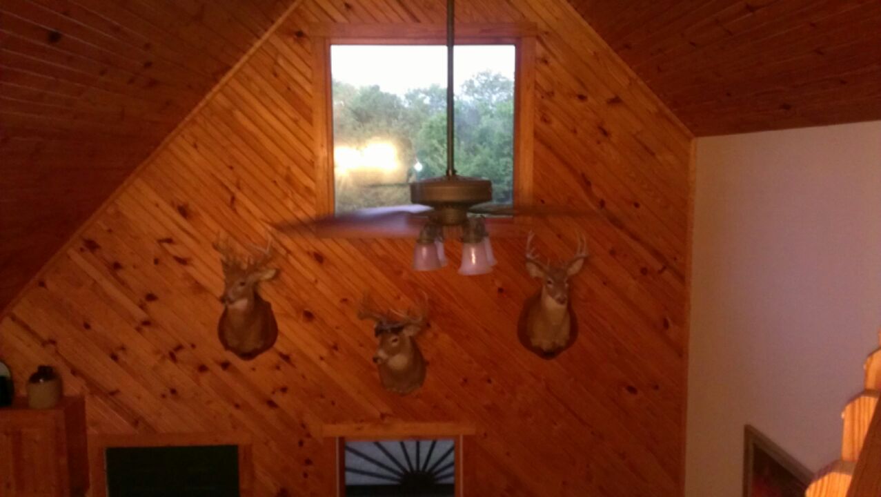 A lot of you guys that are regulars in the chat room probably remember me saying a while back that Britney and I got a gift certificate to a trophy bass lake from my dad for Christmas. With all the stuff going on with the house being built and me changing jobs we knew that there would come a time that we needed to get away for a weekend so we held on to the gift certificate. Well this past September we decided we wanted to go up there and see if we couldn't catch a few big fish. I posted these pictures on facebook when we got back so some of you have already seen them, but now that I am finding time to come on here more often I thought I would post the pictures here as well. This place is a big strip pit that was dug decades ago for mining and offers very challenging conditions because the lake was totally dug out rather than filled by a dam, which means that all the natural depth changes or contour lines you find in a lake don't exist here. You can be 5 or 6 feet away from the bank and you might be in 20-30 feet of water. It still has some shallow areas but it really makes it overwhelming when you are looking around the lake trying figure out what to do. Anyways the owner of the property bought it and stocked it with Florida strain largemouth and has been managing it for trophy fish for around 20 years. During a conversation with the owner he told me that every year there is usually one fish in the 12-13lb range caught, and several 10lbers..........and he had pictures to prove it LOL. Anyways our trip was pretty much doomed from the word go, the weather was in the low 90's all week until the day we left and we had a cold front that dropped temps to close to freezing over night and highs were in the upper 50's and not a cloud in the sky. We stayed there for 2 nights and worked our butts off trying to find big fish but we had to settle for a good time and several average fish. This place sits on 2,000 acres and he has 3 cabins placed around the lake that he rents out to anglers and deer hunters. The cabins are all secluded and you have waterfront views and a dock with electric with each cabin. At no point did we see another person, and we only found one of the other cabins and that was because it is in the back of one of the coves we fished........we never did find the other cabin, you are certainly secluded here. The cabins are like no place I have ever stayed. All of them were built by the owner and are top notch places with all the comfort of home, they are beautiful. We had such a great time that we just called this last week and booked another trip for the end of April, hoping to hit it just right and get to do some sight fishing. Here are some pictures from our trip.