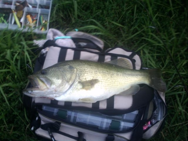 Last night I was fishing Buzzbait and all sort sof topwater. Catching all kinds of dinks with a senko. saw some boils near a log and couldn't get anything on a buzzbait. Pulled out a Bass a reno...probally the oldest lure I have. Here was the result. Couldn't get another hit on topwater but I will take this one.