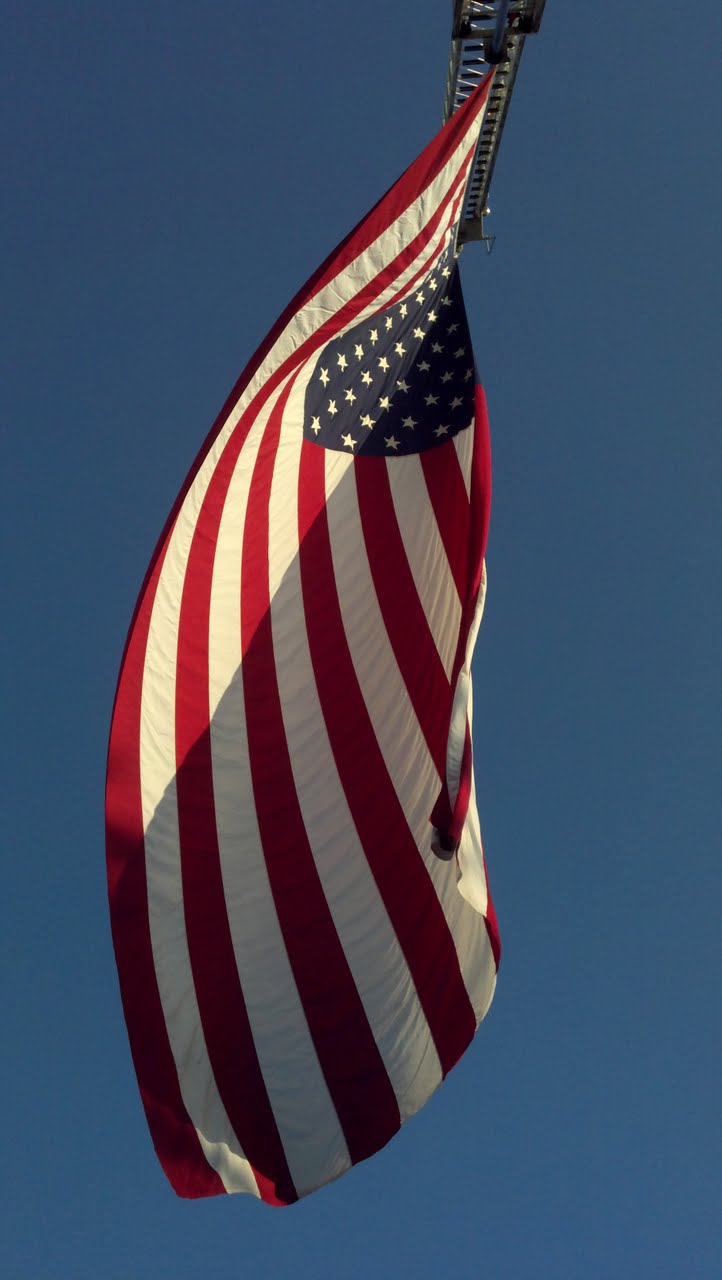 From left to right: My oldest and her fish (she wouldn't hold it), sunrise over Diamond Valley Lake, Ol' Glory flying high on DVL, 87 boats waiting to launch for the tournament on DVL, and a picture of Ol' Glory I took one day during a BBQ for our local firefighters and police officers to thank them for what they do. |