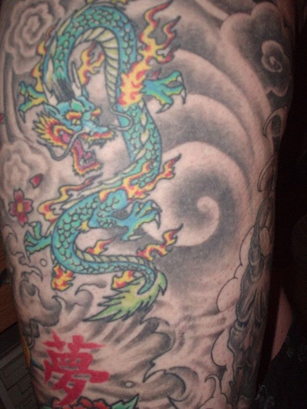 I know what you mean..most of my camera shots don't do the art work justice..my first one 6 years ago was a 14 inch dragon, then I put a dragonhead that covers my right foot, and now having the sleeve down, I got room for the black and grey dragon that I hope will be my best piece yet..I set the left leg up in a white tiger that will be in conflict with the dragon on the right (inside) of the left leg...should take 3 sessions to do.