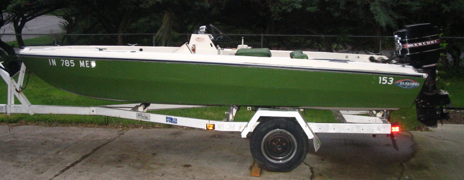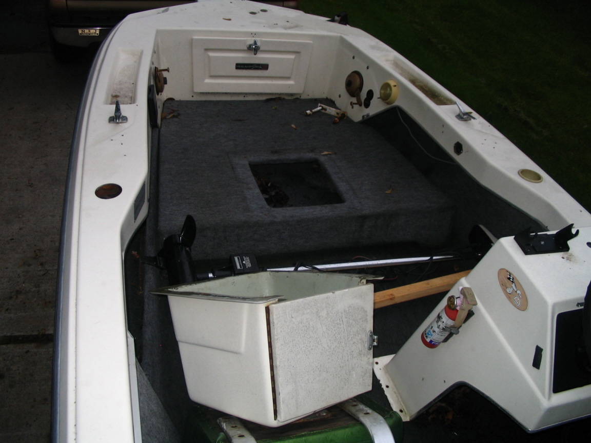 I just picked up this boat last night. It was given to a buddy who didn't have time for it so he called me up and told me I could have it if I came and got it. It is a early to mid 70's 16' Glastron with a 50 horse Merc. My buddy got the motor running and his cousin was amazed at what good shape it was in. If the hour meter is correct it's only got 160 hrs on it. The wood in the floor is pretty much shot so I'm planning on replacing it and the carpet. My plan is to put in a 3 across bench seat and front and rear casting decks with seats. Under the rear casting deck I want to put in a permanent gas tank, batteries, and charger. I'm debating whether or not to put in a live well since I won't be tourney fishing from the boat. Under the front deck I want to put in a rod locker and other storage. Tell me what you think and give me suggestions on how to go about it.