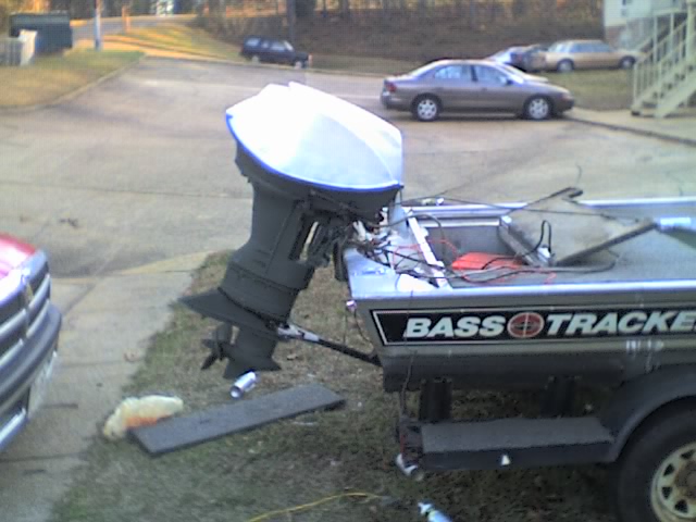 Anyways, here it is just hangin on the transom. Its not bolted on yet.