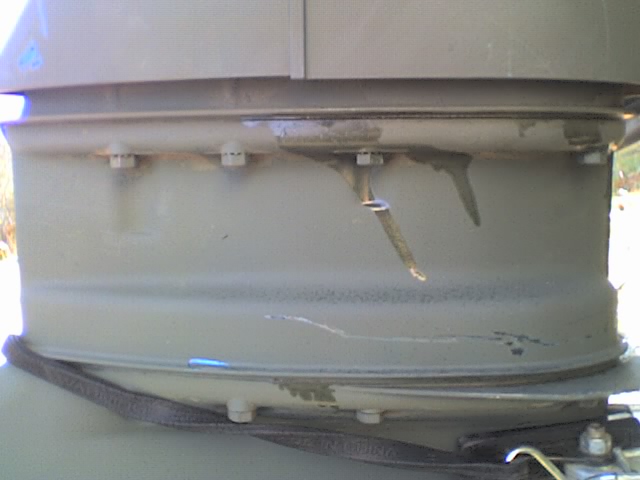 that leak is in the mid. should not bother a whole lot. just remember that old a moter is NOT a self drainer.. do NOT tip it up while sitting leave it as far down as possable. after you run it a while on the muff make sure when done you remove the muffs. and start the moter just for a second. not enough to hurt it but enough to throw the water out of the lower..