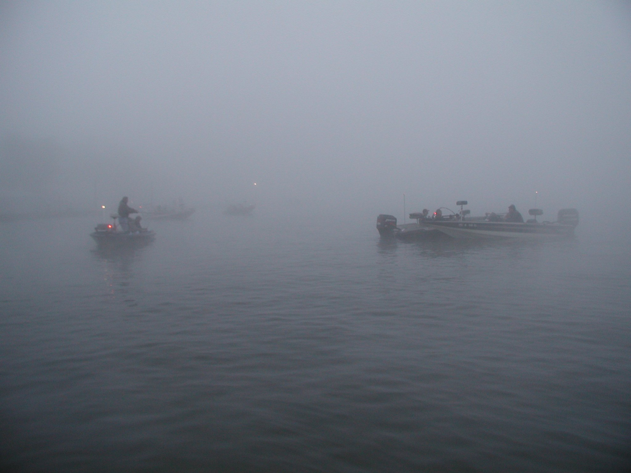 My Dad was over on the elk river this morning and said the fog was real bad over there - but they were busting topwater. FWIW