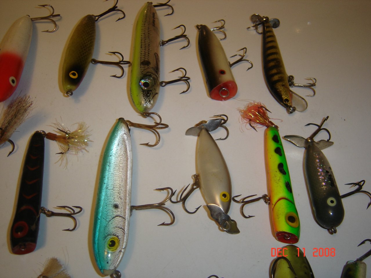 I see several lazy ikes, a cripplekiller, lots of popR's. Some newer stuff to, like the spook and some pop rs, torpedos and chug bug... those metal crazy wobblers have a time n place on top water too.. If it were me I'd put the older ones on display or all of them, instead of using them....well maybe use the newer stuff LOL damnit@baitmonkey itus